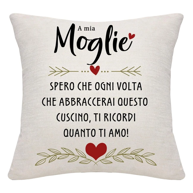 Regala alla tua moglie un cuscino che le ricorderà quanto la ami ogni volta che lo abbraccia. Perfetto come regalo di compleanno, San Valentino, anniversario e Natale. Realizzato in morbido materiale di lino, con chiusura a zip invisibile. Dimensioni 45x45 cm.