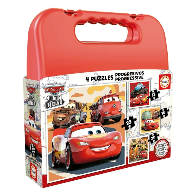 Educa Maleta Cars Set 4 Puzzles Infantiles Progresivos 12-25 Piezas 16x16cm 3 Años 19677