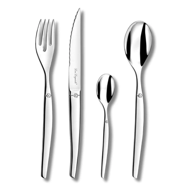 Profitez de cet ensemble de 24 couverts Lou Laguiole pour 6 personnes de la gamme Jet. Couverts en acier inox avec une finition brillante poli miroir. Lame microdentée pour une coupe optimale et un tranchant longue durée. Ne manquez pas cette version raffinée en inox brillant, le Laguiole de table le plus stylé de sa génération. Compatible lave-vaisselle et haute résistance à la corrosion. Commandez maintenant et ajoutez une touche d'élégance à votre table !