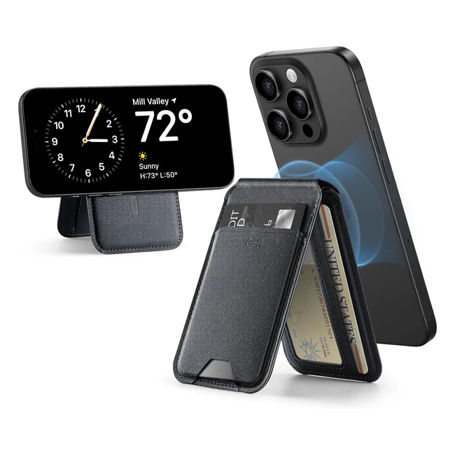 ESR HaloLock Magnetisches Vegan Leder Wallet Ständer Magsafe 3 Karten iPhone 15/14/13 Serie Schwarz