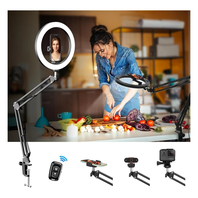 Enhance your videos with the Evershop Desk Ring Light! Perfect for video recording, photography, and live streaming. Adjustable lighting modes and brightness levels. Easy to install and portable. Lifetime warranty. Buy now and illuminate your content!