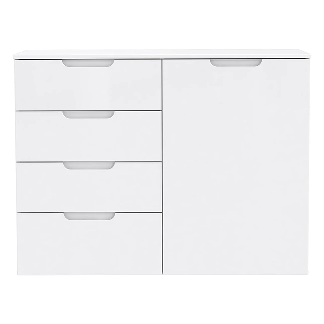 Forte Sienna Kommode, 1 Tür, 4 Schubladen, Holzwerkstoff, Weiß Hochglanz