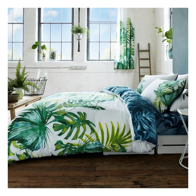 GC Gaveno Cavailia Palm Leaves Duvet Cover Double - Reversible Bedding Set - Easy Care - Multi