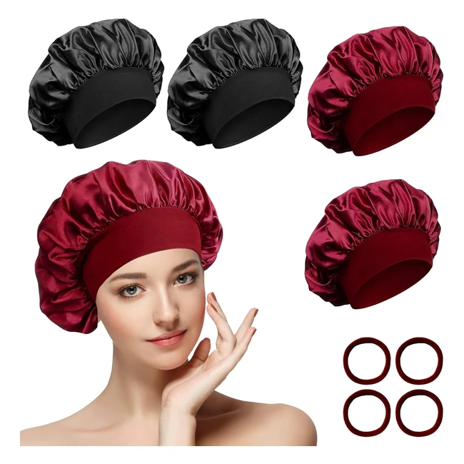 Gorro de Satén para Pelo Rizado - 4 Piezas Ajustables - Suave y Cómodo