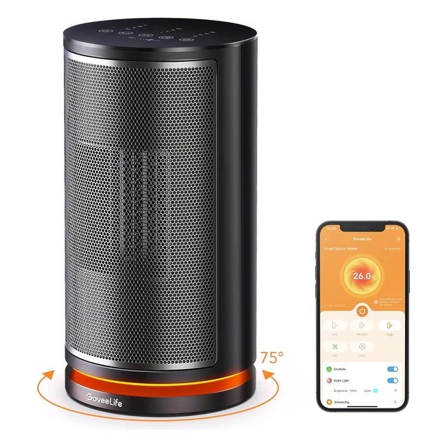 Goveelife Intelligenter Keramik-Ventilatorheizer leise energiesparender Elektroheizer mit Thermostat 75° Oszillation App Sprachsteuerung 3 x Heizstufen mehrfacher Schutz Raumheizer für Badezimmer