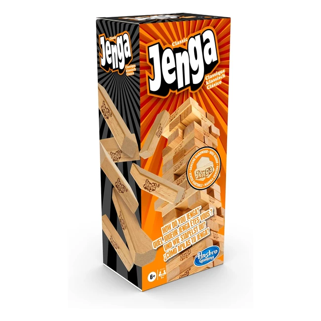 Hasbro A2120EU4 Jenga Classic Kinderspiel Reaktionsschnelligkeit ab 6 Jahren Braun 26 x 75 x 75 cm
