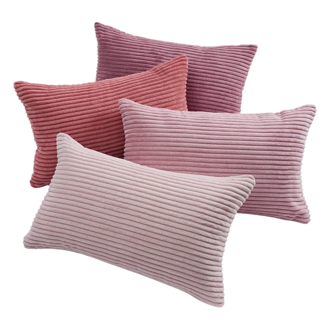 Housse Coussin Rose Velours Côtelé 30x50 - Lot de 4 - Décoration Chambre Salon Jardin - Douceur Absolue