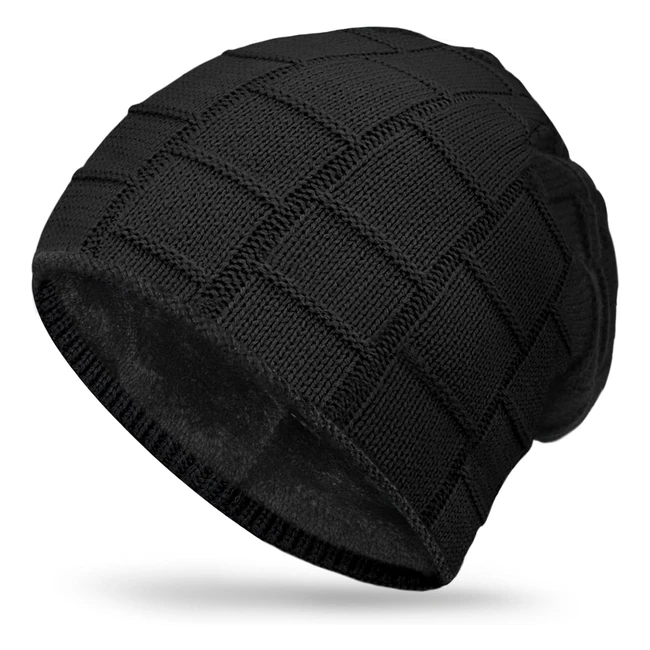 Idée cadeau Noël : Bonnet homme hiver noir, doublé polaire, taille unique
