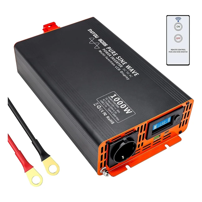 -20%¡Aprovecha esta oferta! Inversor 12V 220V Onda Pura 1000W, potencia estable y máxima de 2000W. Con puerto USB, tipo C y enchufes de 220V. Control remoto inalámbrico y pantalla LCD. Protección segura y ventilador inteligente. ¡Compra ahora y no te quedes sin energía!