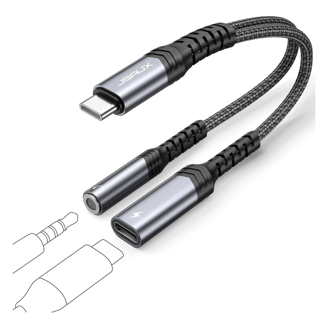 JSAUX USB C Kopfhörer Adapter und Ladekabel 2 in 1 Typ C zu 3,5 mm Klinkenstecker Aux Adapter unterstützt PD 60 W Schnellladung kompatibel mit iPhone 15 Pro Max Samsung S24S23S22S21S20 iPad Pro Pixel