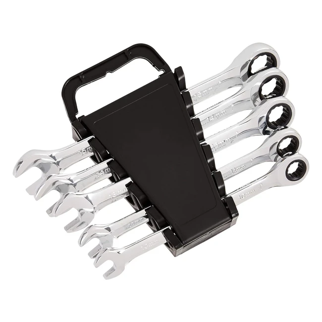 Juego de Llaves de Trinquete Métricas Amazon Basics - Set de 5 Unidades - Acero Cromo Vanadio CRV