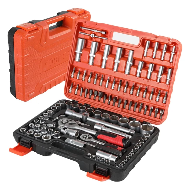 -7%¡Herramientas versátiles! Contiene 108 piezas de alta calidad para montar, desmontar, atornillar y reparar. ¡Fuerte, duradero y práctico! Ajuste de ángulo, botón de caída rápida, mango antideslizante. ¡Ligero, portátil y ordenado! ¡Compra con confianza! #Herramientas #Automóviles #Reparación #ISE #Calidad #Durabilidad #Práctico #Portátil #Orden #Garantía