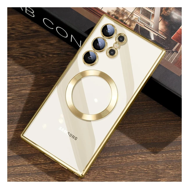 Jueshituo Samsung Galaxy S24 Ultra Case with Integrated Camera Protection Top N56 Magnets Gold Titanium