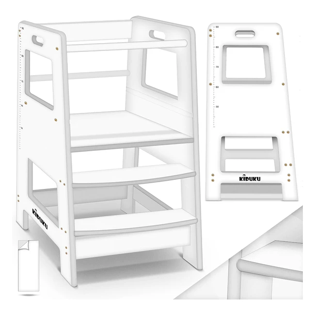 Kiduku Holzturm ab 1 Jahr | Lernstuhl für Kinder | Höchste Sicherheit | Montessori | Weiß