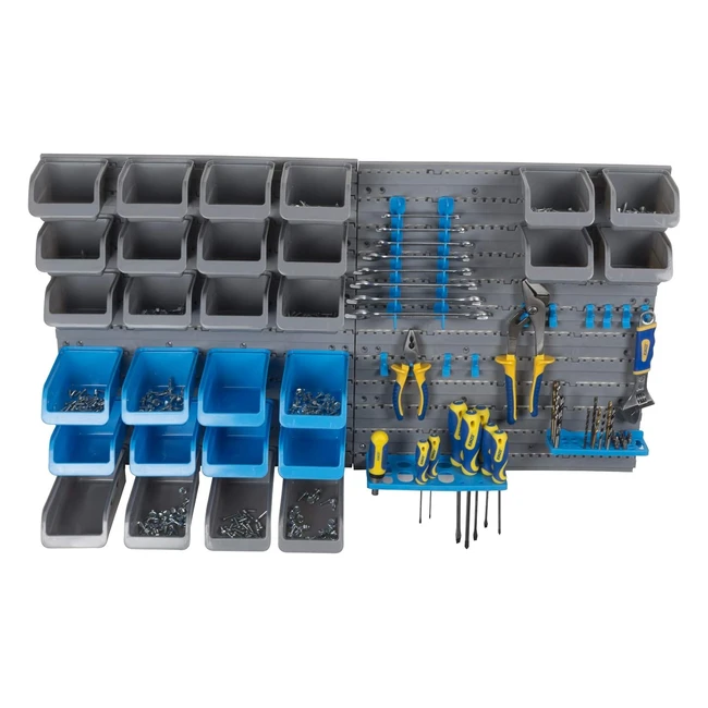 Kinzo Werkzeugwand 43-teilig mit praktischen Aufbewahrungsfächern und Haken in Grau-Blau