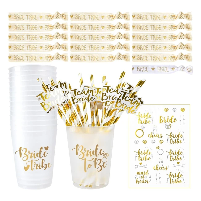 -5%Kit accessoire EVJF contenant gobelet bride, paille, bracelet future mariée, tatouage EVJF. Parfait pour célébrer votre enterrement de vie de jeune fille avec style et élégance. Commandez maintenant!