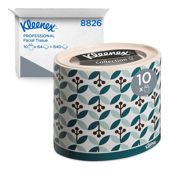 Kleenex Facial Tissue Box 8826 - Soft, Strong, Absorbent - Oval Box - 10 x 64 - 640 Facial Tissues White 3ply
