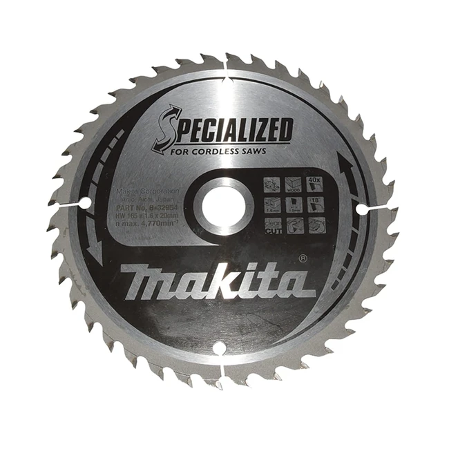 Lama per sega Makita Specialized 165x20mm 40Z B 32954 - Tagli precisi e puliti