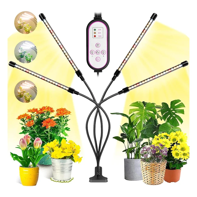 Lampada per Piante Indoor Garpsen - Coltivazione LED 80 Leds 4 Teste - Spettro Completo Grow Light per Semina, Crescita, Fioritura e Fruttificazione