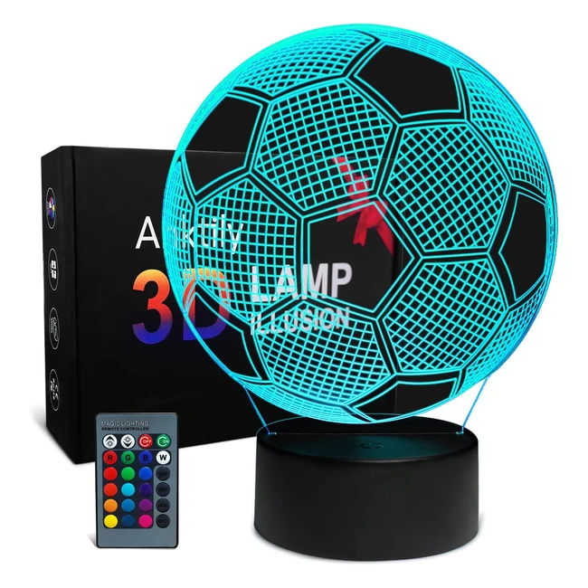 Lámpara 3D Fútbol Ilusión Óptica Luz Nocturna Infantil - 16 Colores - Control Remoto - Regalo Niños