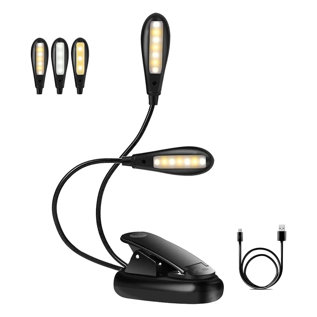Lampe de lecture rechargeable Eecoo - 14 LEDs, 3 couleurs, 9 modes, luminosité réglable