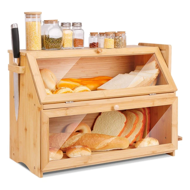 Leader Accessories Double Decker Bamboo Bread Bin | 2-Layer Large Capacity | Kitchen Storage 197x98x145