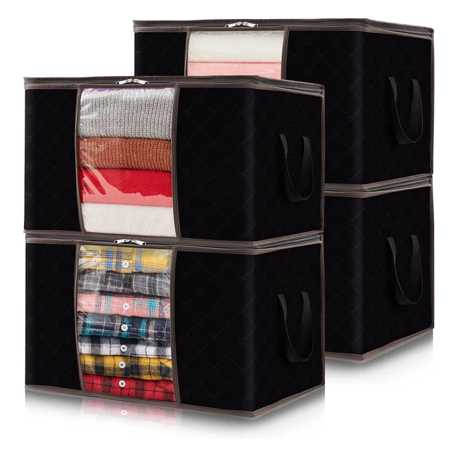 Lifewit 4 Pack Clothes Storage Bags - Foldable Box - 60L Capacity - Clear Window - Black