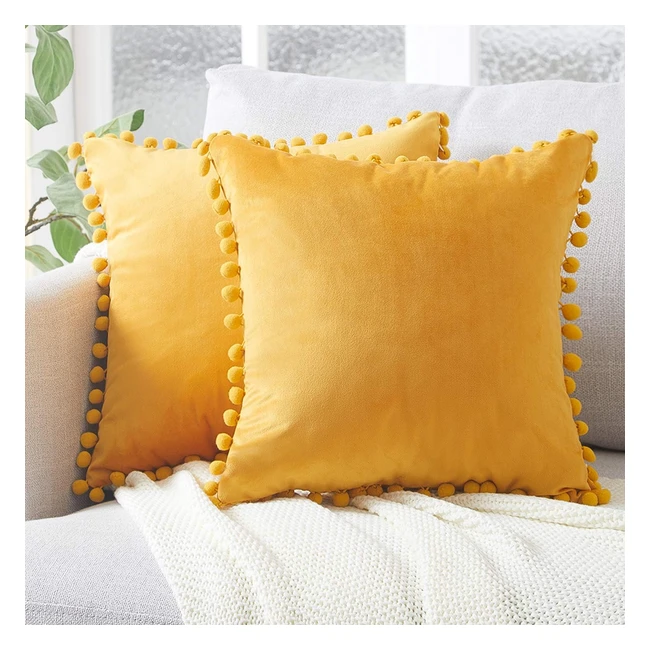 Lot de 2 Housse Coussin 40x40 Jaune Moutarde Velours Doux Topfinel