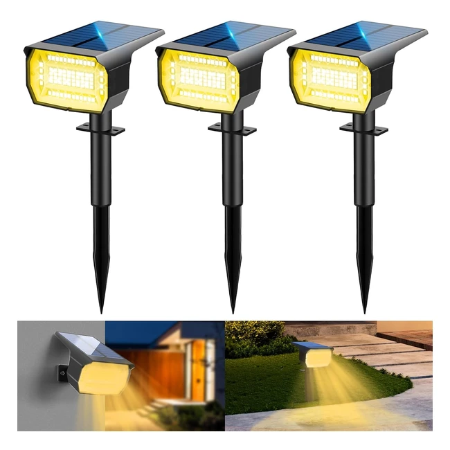 Lotmos Spot Solaire Extérieur 3 Pack72LED 3 Modes IP67 Étanche Lampes Solaires Jardin 3000K Fonction 2 en 1