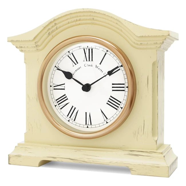 Mantel Clock Wooden Distressed Cream - Towcester Clock Works Co - Ref. 1234 - Roman Dial