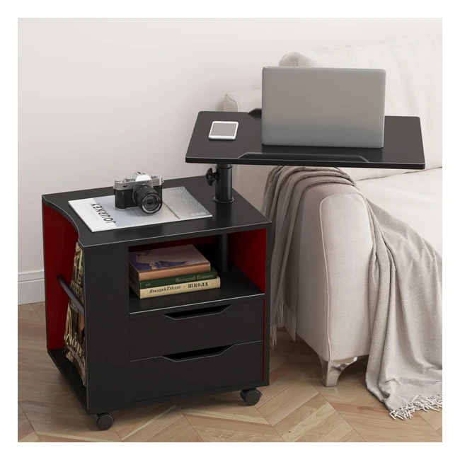 ¡Aprovecha esta oferta! Mesita de noche de madera resistente a arañazos y fricción, estructura metálica robusta, ajustable en altura de 70cm a 90cm. Con 2 cajones, 1 compartimento abierto y ruedas móviles. Ideal para dormitorio, salón o estudio.
