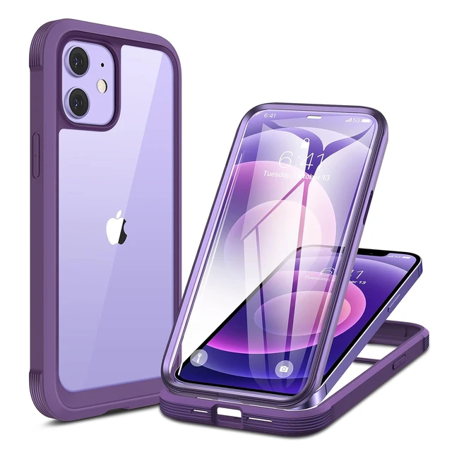 Miracase Compatible with iPhone 12/12 Pro Case, Purple, 9H Glass, Full Body Protection