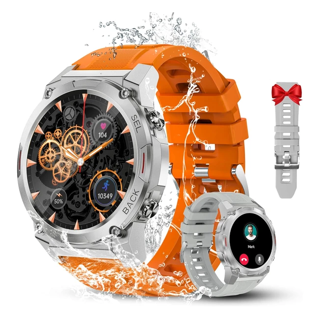 Montre Connectée Oukitel BT50 Homme Militaire - Écran Tactile HD 143 - Smartwatch Étanche IP68 avec Fréquence Cardiaque et Moniteur de Sommeil - 2 Bracelets