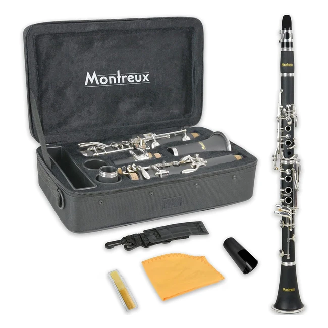 Montreux Student BB Clarinet for Beginners - Lightweight Carry Case, Mouthpiece, Reed - ABS Resin - 17 Keys B Flat