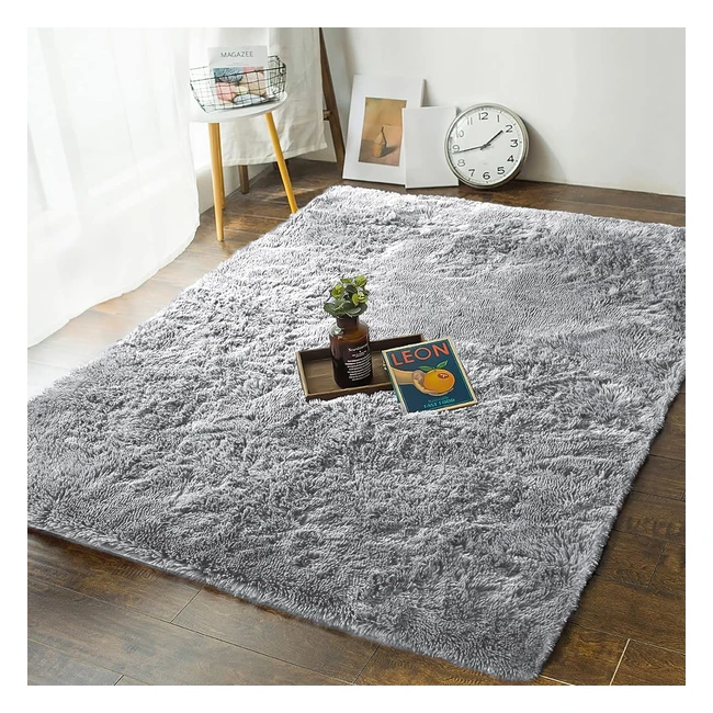 Moonlight20015 Fluffy Grey Area Rug 120 x 170 - Soft Shaggy Pile Non Slip Modern Carpet