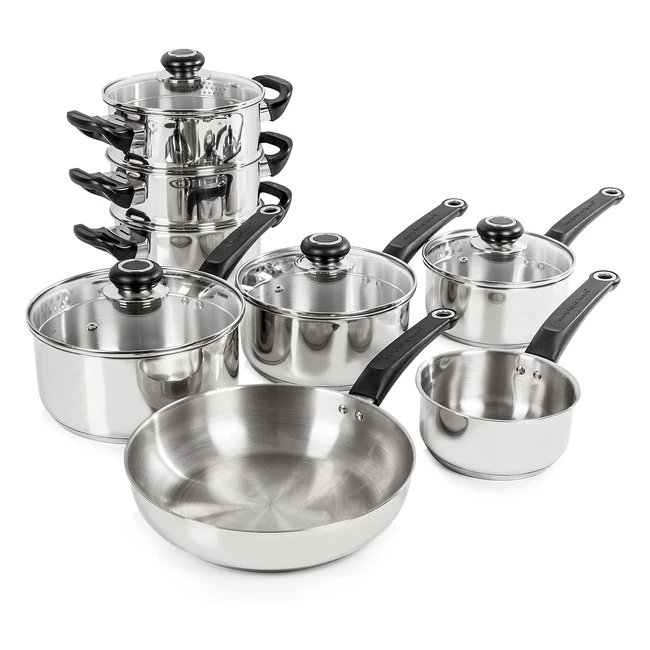 -41%Get the Morphy Richards 970001 Equip Induction Pan Set now! This 8 piece set includes 16, 18, and 20 cm saucepans, a 14 cm milk pan, 24 cm fry pan, two 18 cm steamer inserts, and one 18 cm stockpot. With aluminium thermocore encapsulated bases for even heat distribution, tempered glass lids with steam vents for added strength and safety, and stay cool handles and lid knobs, this pan set is perfect for all hobs including induction. Don't miss out on this amazing deal! Comes with a 1-year guarantee, and you can get an extended 10-year guarantee upon registration of the product.