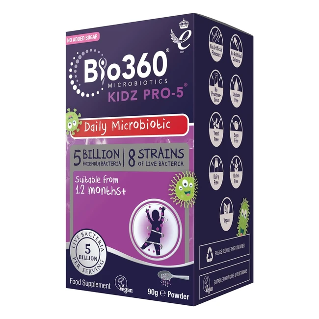 -37%Boost your child's health with Bio360 Kidz Pro5! Each serving provides 5 billion bacteria across 8 strains. Easy to add to food or drink. Manufactured in the UK to pharmaceutical standards. No refrigeration needed. Suitable for vegetarians and vegans. Buy now!