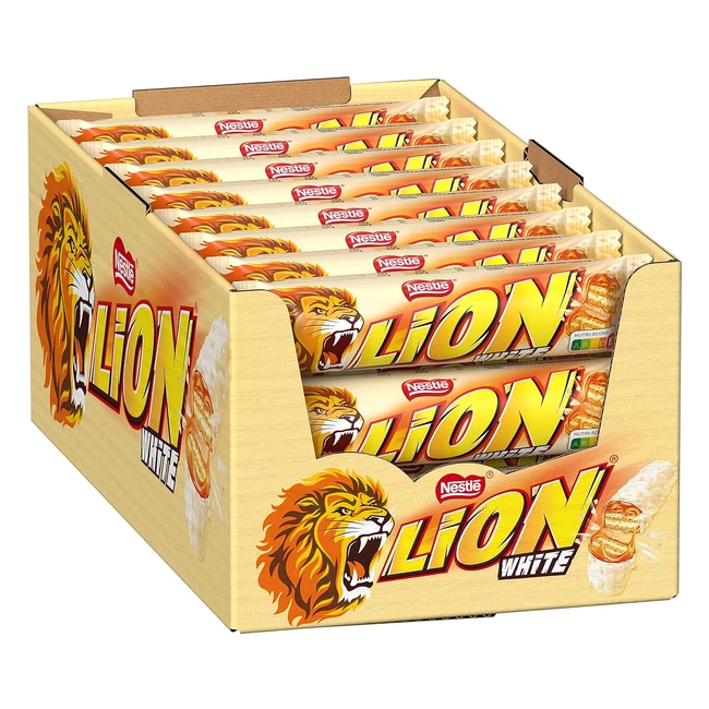 NESTLÉ Lion White Schokoriegel mit weißer Glasur, leckerer Karamellfüllung und knusprigen Waffelsweets, Großpackung 24 Stück à 42 g