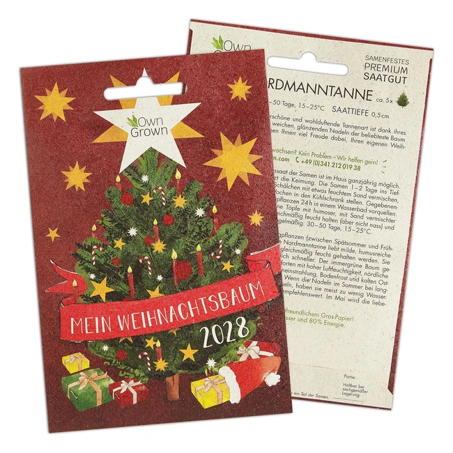 Hol dir deinen eigenen Weihnachtsbaum! Die wunderschöne und duftende Nordmann Tanne (Abies nordmanniana) ist der perfekte Baum für die festliche Jahreszeit. Mit ihrem beeindruckenden Wachstum und den glänzenden Nadeln ist sie ein echter Blickfang. Die Nordmann Tanne liebt milde, tiefgründige Böden, die gleichmäßig feucht gehalten werden. Belohne deine liebevolle Pflege mit roten Blüten. Ideal als Weihnachtsgeschenk! Pflanze die Nordmann Tanne das ganze Jahr über in einen Topf. Der immergrüne Baum gedeiht auch an halbschattigen Standorten. Zertifizierte Nadelbaum Samen für 5 Koniferen pro Packung. Perfekt für Adventskalender oder kleine Weihnachtsgeschenke. Entdecke unsere hochwertige Auswahl an Samen!
