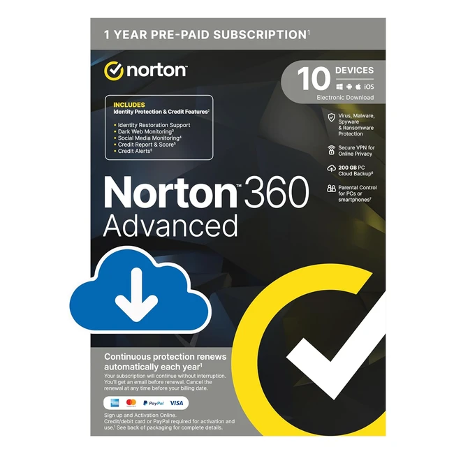 Norton 360 Advanced 2024 - 10 Devices Subscription | Identity Restoration | VPN