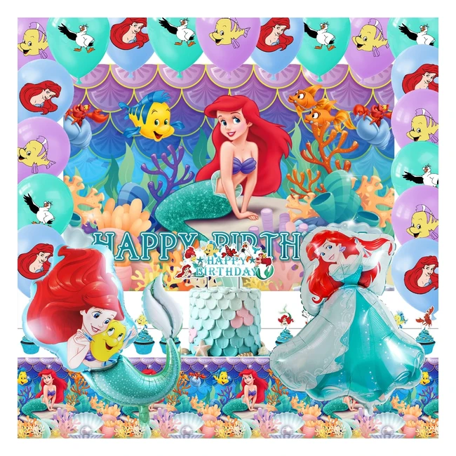 Nuevo Kit Decoración Cumpleaños Sirena - Fondo Ariel - Globos - Suministros Infantiles