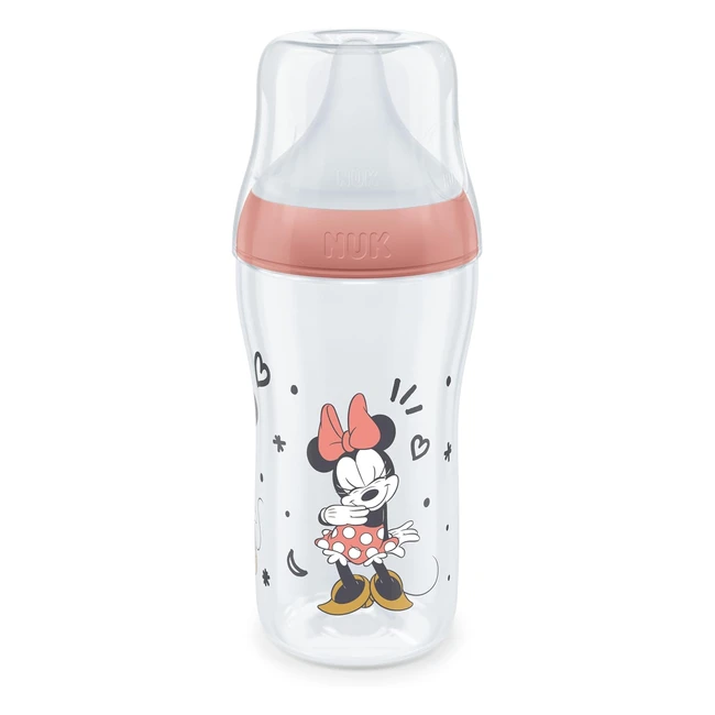 NUK Perfect Match Baby Bottle 3 Months | Adapts to Baby's Palate | Temperature Control | Anti Colic Vent | 260ml | BPA-Free | Medium Silicone Teat | Disney Mickey Mouse Red
