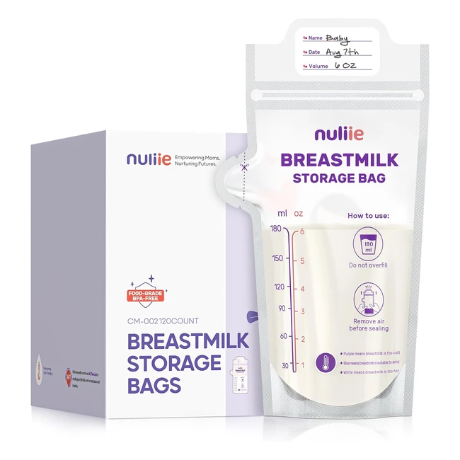 Nuliie Bolsas Almacenamiento Leche Materna 180ml Pack 120 BPA-Free Detección Temperatura