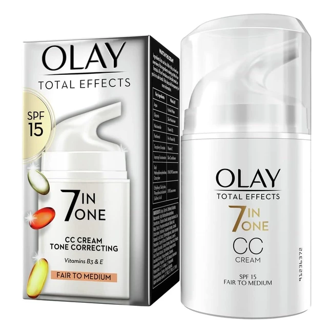-46%Get flawless coverage instantly with Olay Total Effects 7in1 CC Day Cream. With 50% more Vitaniacin complex than BB cream, correct your skin tone appearance over time. Fight the seven signs of aging for glowing and fabulous skin. Broad spectrum SPF 15 helps protect from sun damage and exfoliates to enhance skin's natural self-renewal process. Keep skin radiant with even tone!