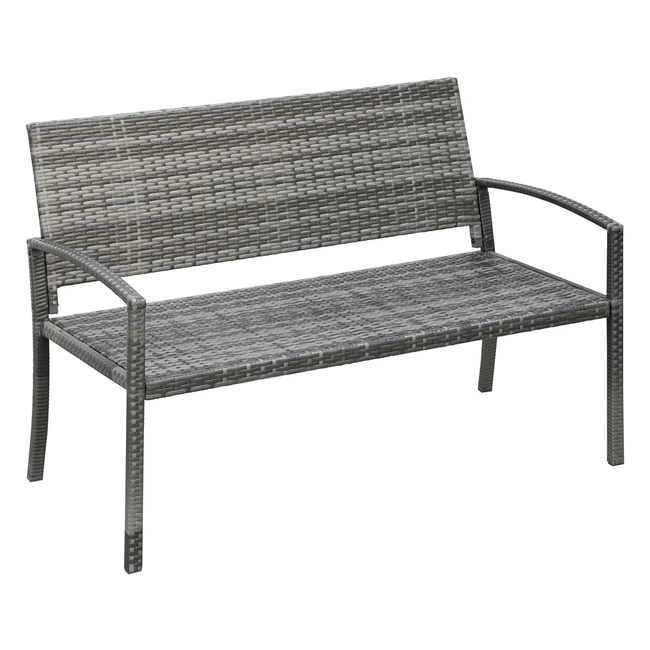 Outsunny Gartenbank Rattan-Look Parkbank mit Stahlgestell Balkonbank für 2 Personen Gartenmöbel maximale Belastung 320 kg grau 122 x 60 x 85 cm