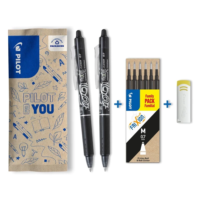 -31%Erasable rollerball pen set of 9 for quick and clean error correction. Retractable pen with stainless steel tip and rubberized grip. Refillable with Pilot replacement refills. Includes 2 black pens, 6 refills, and 1 eraser.