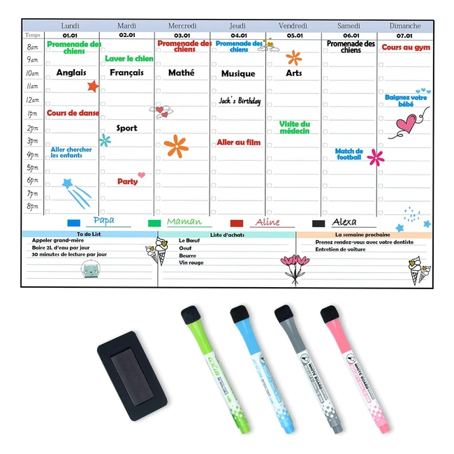 -5%Planificateur hebdomadaire aimanté - Utilisé comme budget familial, planificateur de repas, rendez-vous, classe, fitness - Effaçable - Livré avec marqueurs et gomme - Cadeau de Noël idéal