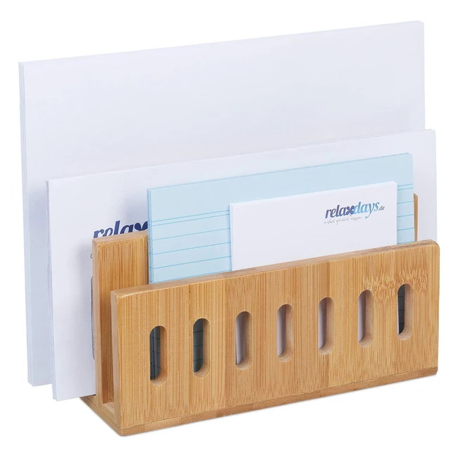 Portacartas Bambú 3 Compartimentos - Relaxdays 13 x 18 x 8 cm
