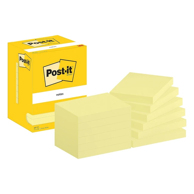 Post-it Notes Jaune Canari - Pack de 12 blocs - 100 feuilles par bloc - 76 mm x 102 mm - Idéal pour les prises de notes, listes de tâches et rappels