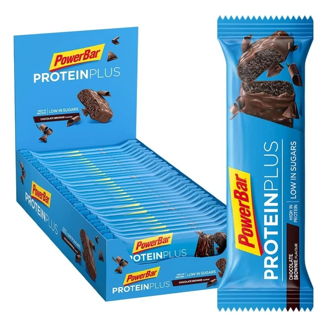 PowerBar Protein Plus Riegel, 107 kcal, wenig Zucker, Fitnessriegel mit Ballaststoffen, Schokoladen-Brownie, 30 x 35g